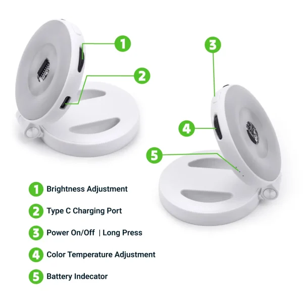 Compact MagSafe selfie ring light with cool and warm LED tones, adjustable brightness, and built-in battery—ideal for influencers, professionals, and promotional tech gifting.