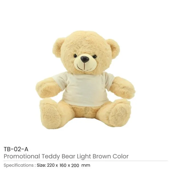 Promotional Teddy Bear toys for promotions are available in Light brown color and wearing a white T-shirt. For the production of individualized stuffed animals, both white polyester and synthetic fur are commonly used materials. In addition, Teddy Bear wears a white polyester T-shirt with a pattern on it. There is an option for printing via heat transfer. Personalized Toys, such as Personalized stuffed toys, are beneficial to the social development of infants.